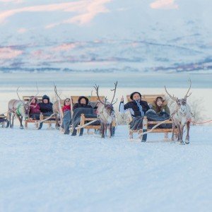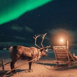 Winterausflug: Lernen Sie die Wildnis hautnah kennen, bei einem Spaziergang zwischen 300 Rentieren und einer abendlichen Rentier-Schlittenfahrt– und mit etwas Glück sehen Sie dabei sogar Nordlichter. Lassen Sie sich das 3-Gänge-Menü schmecken und lauschen Sie den samischen Gesängen und Geschichten.