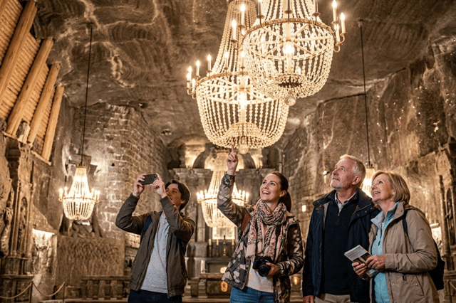 Entdecke das Salzbergwerk Wieliczka mit seinen atemberaubenden Kammern, Stollen und Salzskulpturen, die reich an Geschichte und unterirdischen Wundern sind.
