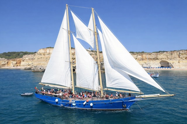 Fahre mit einem einzigartigen Segelschoner die herrliche Algarveküste entlang. Beobachte die beeindruckenden Klippen und Meereshöhlen und schwimme im erfrischenden Meerwasser.