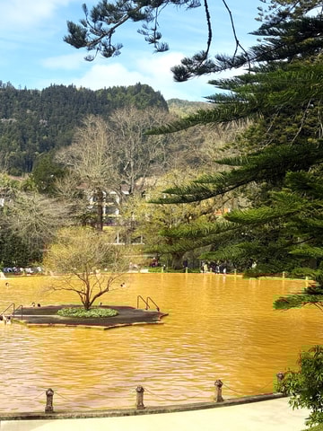 In der Stadt Furnas kannst du die üppigen Thermalquellen besuchen und darin baden. Es ist ein Ort, der von Fumarolen und Caldeiras umgeben ist, wo wir sehen werden, wie das berühmte Cozido zubereitet wird.