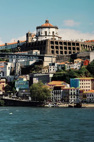Bewundere die Aussicht auf Porto von der Mitte des Douro-Flusses.