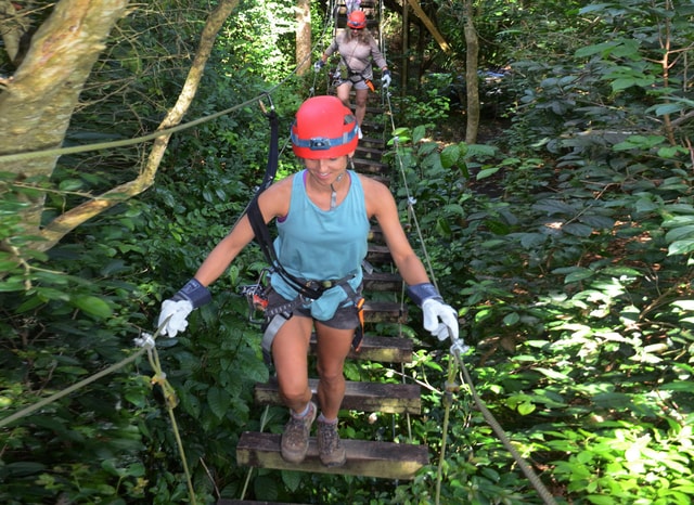 Erlebe ein Abenteuer, das Ziplining, Hängebrücken und Wandern bei einem geführten Ausflug zur Hacienda Campo Rico in Carolina, San Juan, kombiniert. Wandere durch die Berge und genieße die Aussicht auf die Natur.