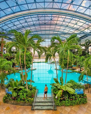 Genieße Europas größtes Thermalbad mit Hin- und Rücktransfer ab Bukarest und 4,5 Stunden Zugang zu den Palm- und Galaxy-Bereichen mit tropischen Pools, Rutschen und Entspannungszonen.