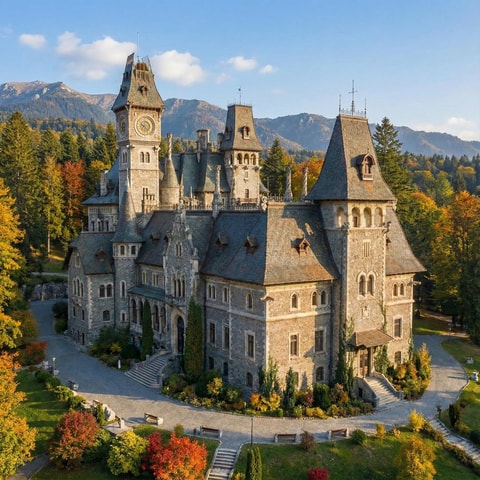 Besuche die Schlösser Bran, Peles, Pelisor und Cantacuzino auf dieser Gruppentour ab Brașov. Reise durch die atemberaubenden Landschaften der siebenbürgischen Alpen und der südlichen Karpaten.