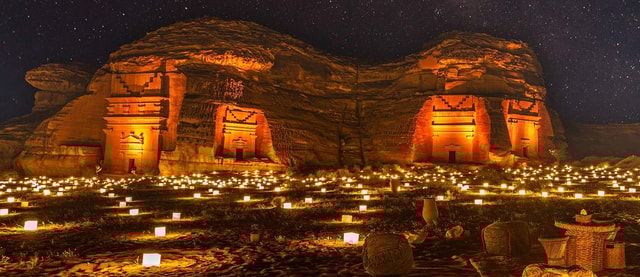 Genießen Sie ein Drama, das sich nach Einbruch der Dunkelheit im Kulturerbe von Hegra entfaltet