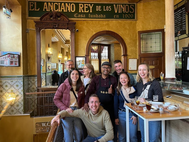 Begib dich auf eine geführte Tour mit einem zertifizierten Gastronomie-Experten und genieße ein einzigartiges Verkostungserlebnis in einigen der ikonischsten Lokale der Stadt. Diese Tour ist sowohl für Liebhaber als auch für Foodies konzipiert, die reisen, um Orte durch ihre authentischen und manchmal unerwarteten Geschmäcker kennenzulernen, die sich trauen, Neues auszuprobieren, die Traditionelles genießen und sich von der Vielfalt der Tapas überraschen lassen.
