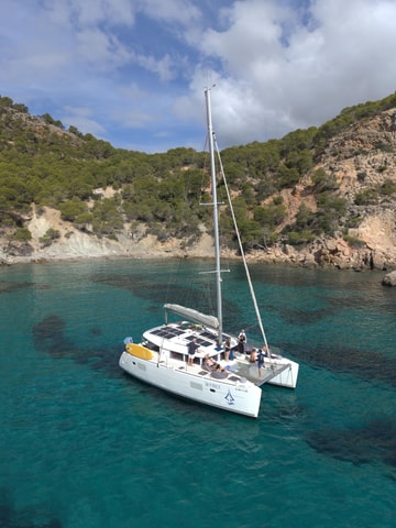 Entdecke Mallorcas Südwestküste und die Malgrats-Inseln auf einer Bootstour mit dem Katamaran. Beobachte Fische, sonne dich an Deck oder halte unterwegs an, um zu schwimmen.