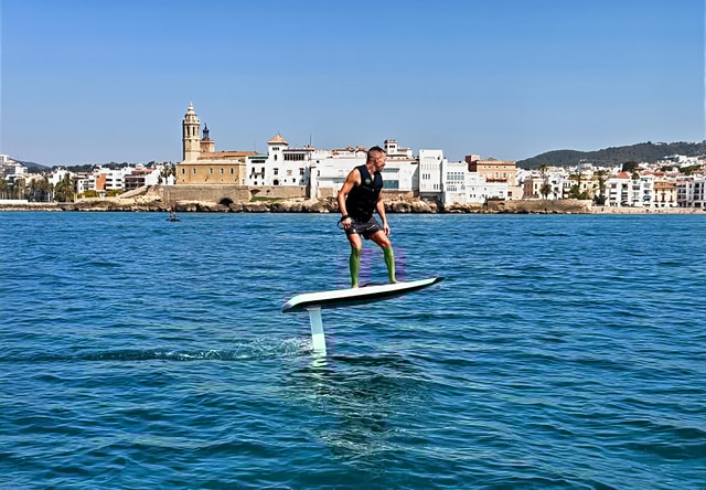 Erlebe den Nervenkitzel des E-Foiling in Sitges. Lerne mit Hilfe eines erfahrenen Lehrers, wie man ein E-Foil-Board steuert, und genieße die atemberaubende Aussicht auf das Mittelmeer.