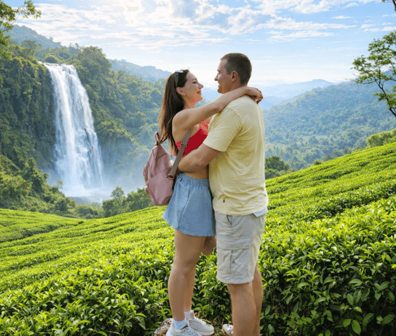 Fahrt von Kandy nach Ella mit dem Luxusauto und dem Panoramazug. Erkunde Nuwara Eliya, Wasserfälle und Teeplantagen, bevor du in Ambewela in den berühmten Bergzug steigst.