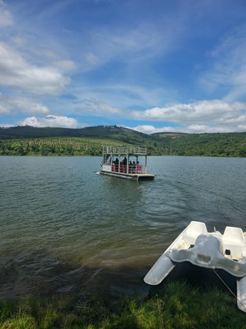 Entspann dich bei einer malerischen Bootsfahrt bei Sonnenuntergang auf dem Da Gama Dam. Genieße eine Auswahl an lokalen Getränken, Softdrinks und Bieren an Bord, während du die weite Aussicht und die ruhige Atmosphäre genießt.