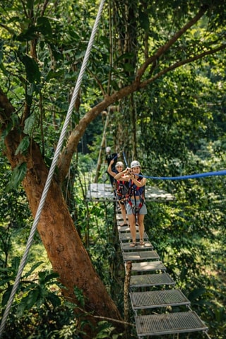 Gleite auf einer Seilrutsche mit 22 Plattformen, einem Sky Bicycle und einem Dschungel-Skateboard durch den Regenwald von Khao Sok. Trefft euch vor Ort und genießt einen aktiven Tag inmitten der Natur.