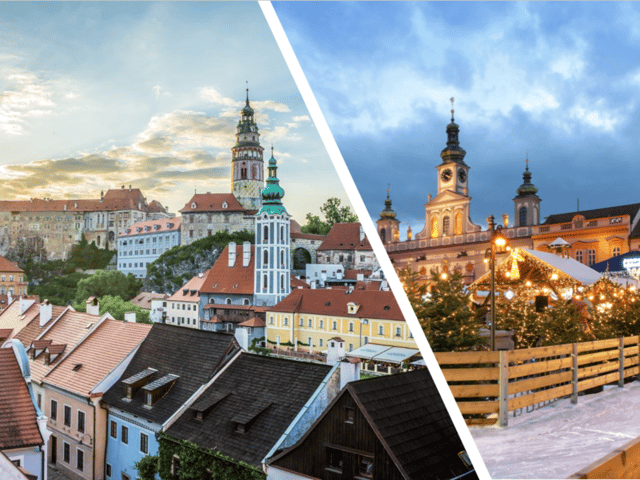 Entdecke die Perle Europas – ein UNESCO-Weltkulturerbe – das Schloss Český Krumlov und die mittelalterliche Stadt. Besuche einen der schönsten Weihnachtsmärkte Mitteleuropas in Budejovice
