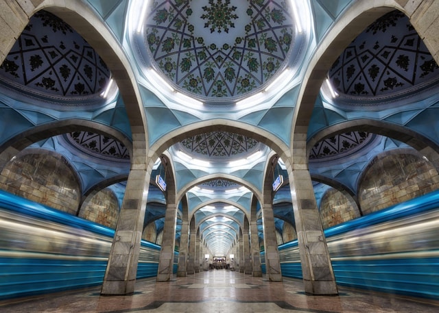 Tauche ein in die atemberaubende Untergrundwelt von Taschkent – ein U-Bahn-System, das gleichzeitig ein lebendes Kunstmuseum ist.