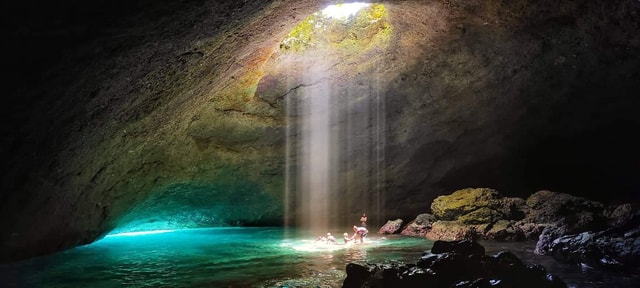 Entdecke die Blaue Grotte bei einer Bootstour ab Tanna. Schwimme durch einen kurzen Tunnel in eine atemberaubende Kammer, die vom Sonnenlicht beleuchtet wird, und genieße einen friedlichen Rückzugsort inmitten der Natur.