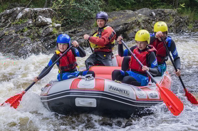 Erlebe den Nervenkitzel des Wildwasser-Raftings auf den Stromschnellen der Stufe 2 des Flusses Spey. Genieße ein familienfreundliches Abenteuer, das für Kinder ab 6 Jahren geeignet ist, mit erfahrenen Guides und Sicherheitsausrüstung.