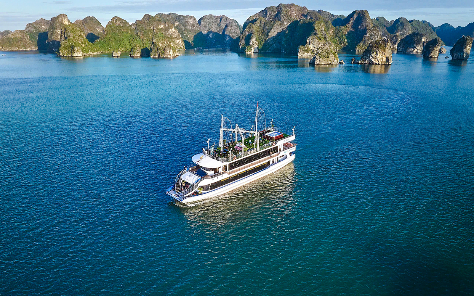 • Gehen Sie an Bord eines Premium-Schiffes, genießen Sie ein warmes Willkommensgetränk und lassen Sie sich ein frisch zubereitetes vietnamesisches Mittagessen schmecken, während Sie die Kalksteinkarstfelsen und Inselchen bewundern.