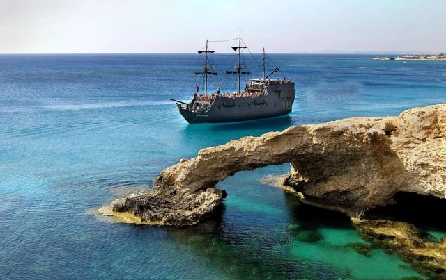 Nimm an einer Piratenkreuzfahrt am Morgen oder bei Sonnenuntergang von Protaras aus teil, um Famagusta, Fig Tree Bay, Cape Greco, Love Bridge und die Blaue Lagune zu erkunden. Schwimme in kristallklarem Wasser, erkunde Meereshöhlen und beobachte Schildkröten.