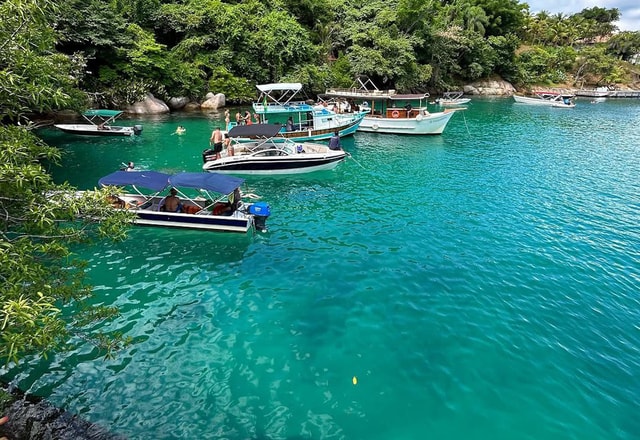 The tour includes three stops for diving in marvelous locations, where you can venture out to explore the area, snorkel amidst marine life, or simply admire the unique scenery of Saco do Mamanguá.