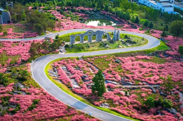 Stackstone Flower Valley in Chongqing's Youyang is this cool new flower-sea art park mixing billion-year-old stacked stone geological wonders with ancient Wu Na shaman culture.