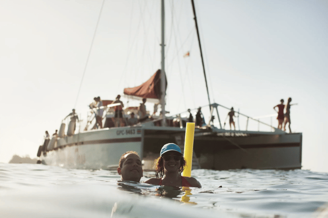 Enjoy a homemade meal and cocktails on board, and take part in activities like sailing, snorkeling, and dolphin watching !