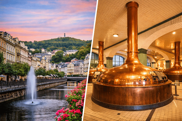 Discover Karlovy Vary and Pilsen on a day trip from Prague. Explore the spa town's historic center, taste mineral water, and tour the Pilsner Urquell Brewery.