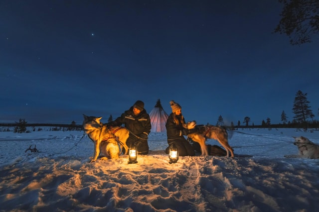 Take a husky ride through the magical Arctic landscape in a true wilderness