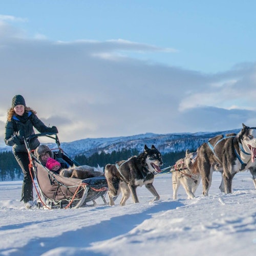 A 10km husky sleigh ride is an exciting way to explore the snowy landscapes of Lapland. You'll fall in love with these wonderful creatures and stunning scenery!