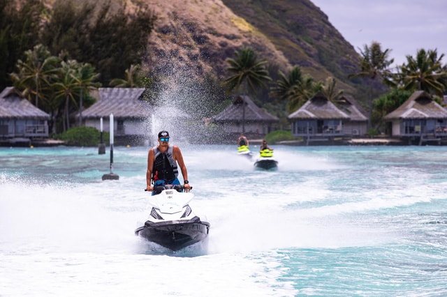 Embark on a Jet Ski tour around Bora Bora with stops. Admire the stunning views of the mountains and the lagoon from the water.