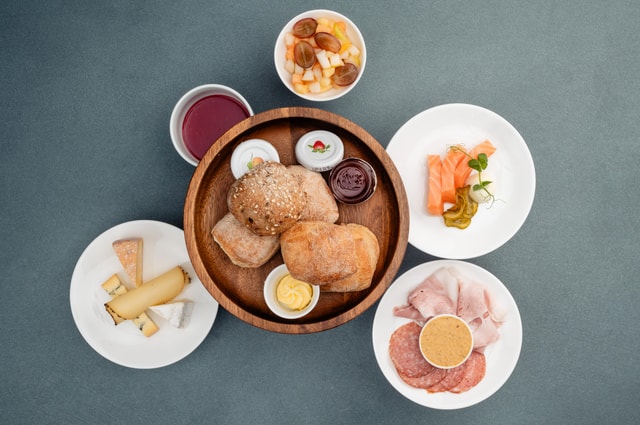 Enjoy a breakfast with regional products at the Sphere Tim Raue restaurant in Berlin's TV Tower. Savor a cup of coffee or tea and a non-alcoholic drink for children.