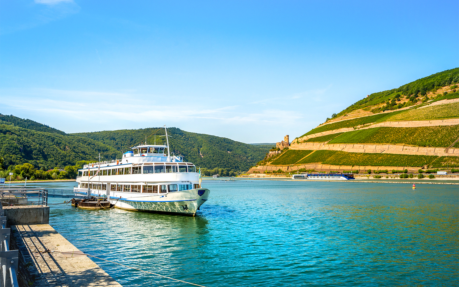 • Set sail on a traditional white Rhine steamer through the Middle Rhine Valley, a UNESCO World Heritage Site, gliding past the winding loops of the lower mountain ranges, medieval castles, and terraced vineyards.