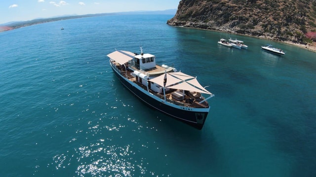 Enjoy a luxury semi-private cruise on the M/Y Irini. Choose between two Day cruises, 11.30pm-2pm and 2.30pm-5 and a Sunset cruise departing at 6pm for Thodorou island.