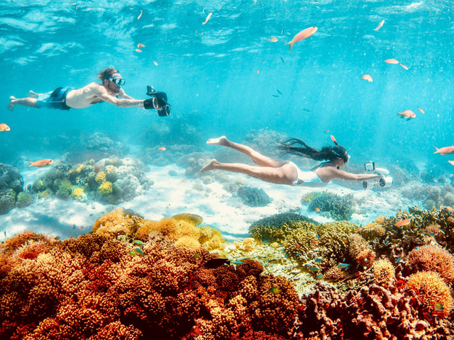 Rent an underwater scooter at Datcha beach in Gosier, facing the Gosier islet. Enjoy a fun and accessible experience to explore the seabed of Guadeloupe in complete freedom.
