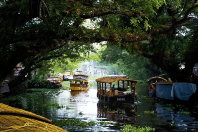 Experience the breathtaking vistas of coconut palms and paddy fields while cruising the backwaters of Alappuzha, dubbed the "Venice of the East."