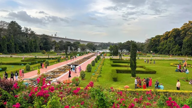 Discover the enchanting Brindavan Gardens on a tour from Mysuru. Stroll through lush lawns, vibrant flowerbeds, and scenic waterways, and enjoy a musical fountain show at sunset.