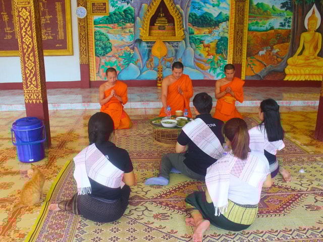 Learn to cook traditional Laos dishes with a local family in Luang Prabang. Visit a market, prepare a meal, and offer it to monks at a Buddhist temple before enjoying lunch together.