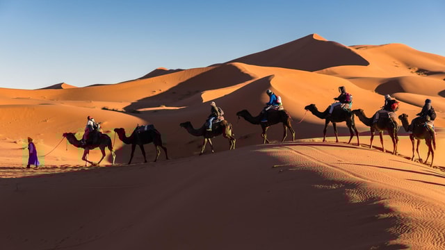 Experience the Moroccan Sahara Desert on a 3-day safari tour from Marrakech Merzouga & Agadir. Spend the night at a Bedouin camp in the Erg Chebbi dunes. Ride a camel to watch the sunset and sunrise.