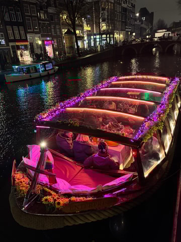 • Stay cosy and dry aboard a heated glass-top roof boat, offering views of Amsterdam’s canals and landmarks such as the Anne Frank House and the Skinny Bridge.