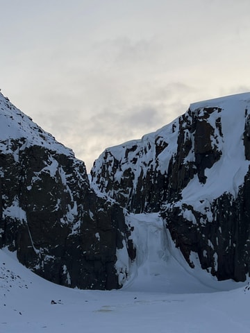Ride as a passenger on a snowmobile across Svalbard’s winter landscape to an ice cave. Explore frozen waterfalls, natural ice sculptures, and blue-tinted caverns inside the glacier.