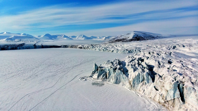 Embark on a guided snowshoe hike onto Longyearbreen Glacier from Longyearbyen. Explore the glacier, ice formations, and the Arctic landscape with expert guidance.