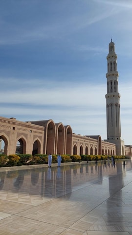 Explore the Sultan Qaboos Grand Mosque on a guided walking tour. Discover its stunning architecture, rich history, and spiritual beauty in the heart of Muscat.