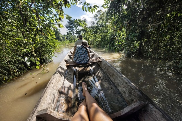 Then board a traditional canoe to navigate through the floating city of Belén, where houses rest on the water and local families live in harmony with the river.
