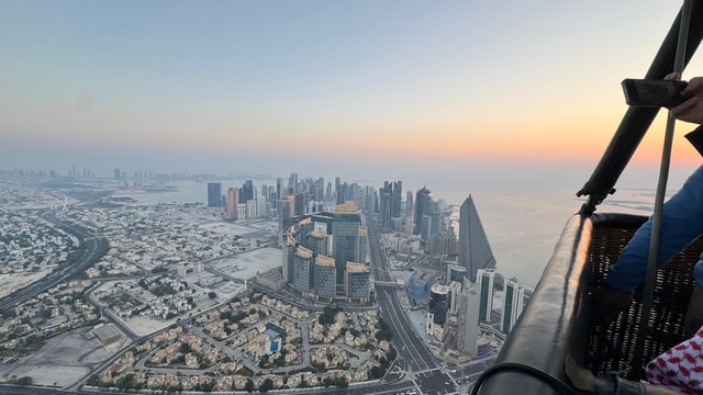 Experience a sunrise hot air balloon flight over Doha. Soar up to 2,000 feet, enjoy panoramic views, and celebrate with a traditional Qatari karak tea.