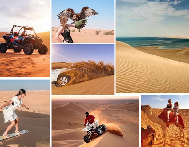 Get ready for a desert adventure that blends excitement, culture, and stunning landscapes. Start your journey with a powerful ATV buggy ride across the golden dunes, try sandboarding down steep slopes