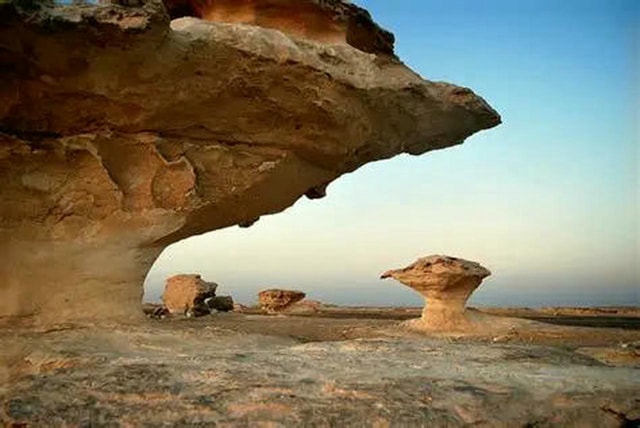 The landscape of the Zekreet peninsula has a unique and fascinating geology. Salt flats, plateau rocks, and open desert dominate this scenery. There are no dunes here but bizarre rock formations and great views over the gulf's blue waters.