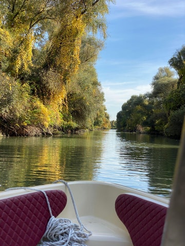 To fully enjoy the Danube Delta and its offerings, we offer you a slow and perfectly equipped boat trip to make your experience unforgettable. The leisurely cruise speed allows you to savor the area's beauty and the guide's explanations. The Camely Boat's draft and design enable smooth navigation through canals and delta lakes, even at low levels. Additionally, boat trips can explore inaccessible areas. It features an indoor room for inclement weather, a dining room with a covered outdoor terrace to enjoy the area's splendor. The Danube Delta, a unique natural paradise, boasts poplar, oak, willow, apple, and wild pear forests on the mainland, along with wild lianas. Floating islets comprise a network of rhizomes, aquatic plant roots, and soil. We wish you a pleasant stay and await your arrival.