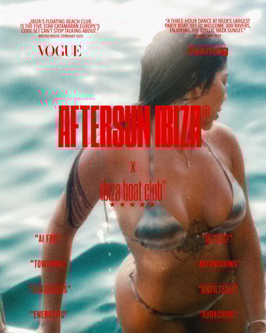 Dance at Ibiza's biggest party catamaran, where everyone is a VIP with access to the VIP sun beds. Watch the sunset, jump into the crystal clear water, and enjoy unlimited drinks at the open bar