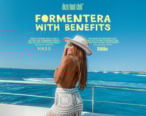 12h all-inclusive boat journey to Formentera with breakfast, Mediterranean lunch, drinks & golden dinner ritual, swim & nature rituals, plus floating spa moments with selected Rituals® skincare.