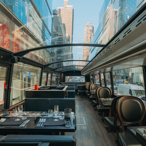 Experience New York's iconic landmarks while enjoying a gourmet dinner aboard the Bustronome.