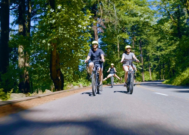 Visit Multnomah Falls and more massive Columbia Gorge waterfalls without the permit, parking and traffic hassle on this self guided e bike tour located just 2 miles from Multnomah Falls