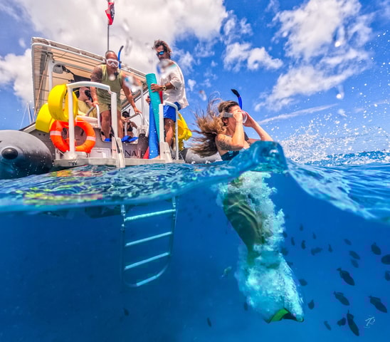 Embark on an adventure to see wild Dolphins, and snorkel with Green Sea Turtles and tropical reef fish! Afterwards, enjoy our water slide, stand-up paddle boards, kayak, floating mat, and lunch!
